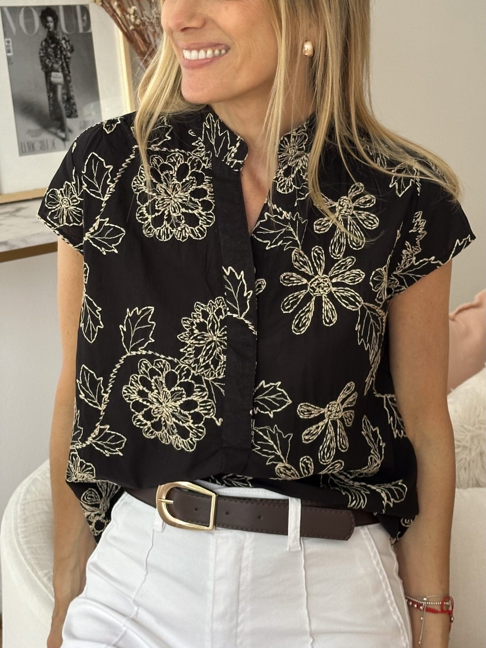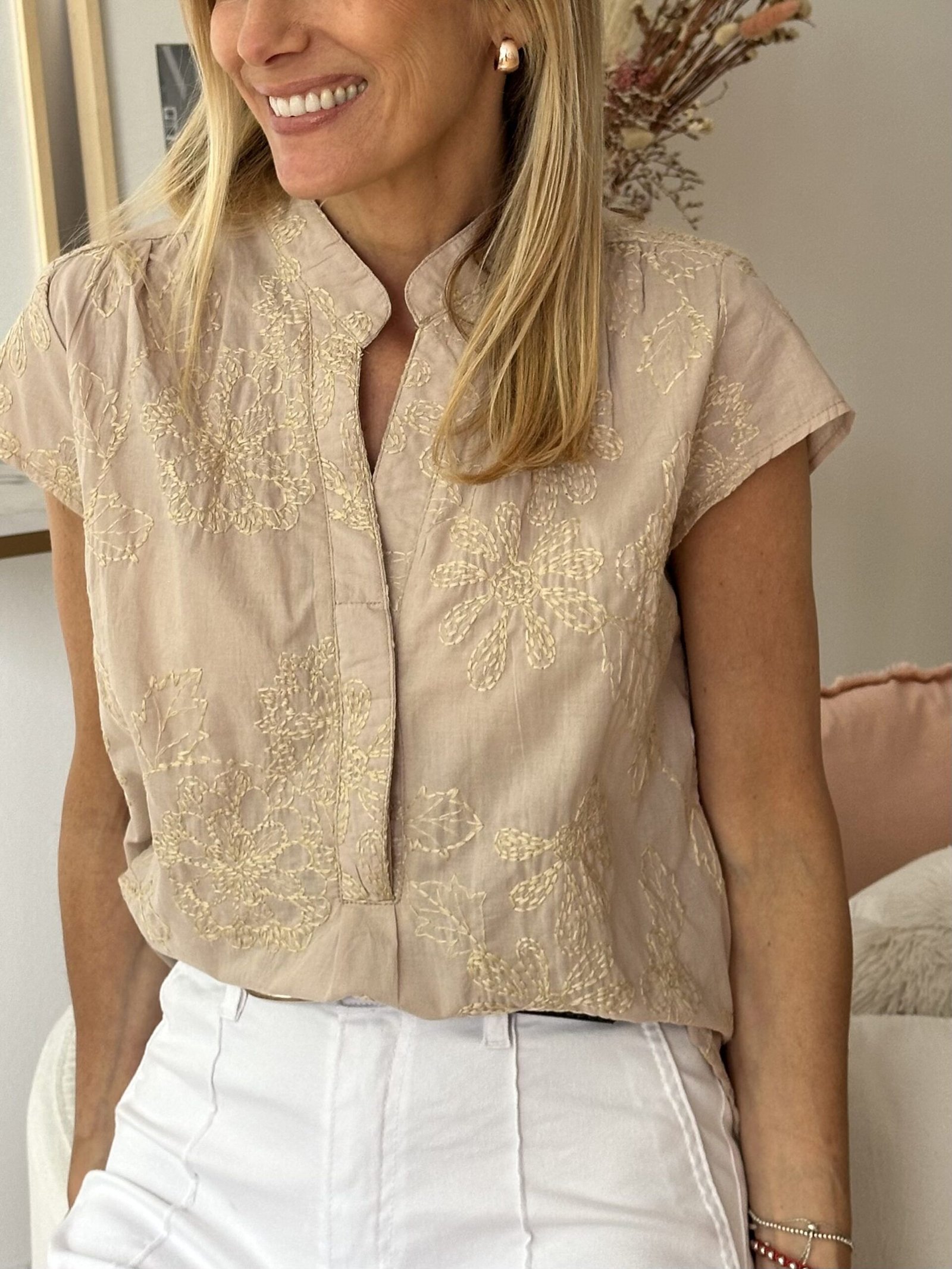 Camisola cuello mao poplin manga japonesa full bordada frente y espalda.