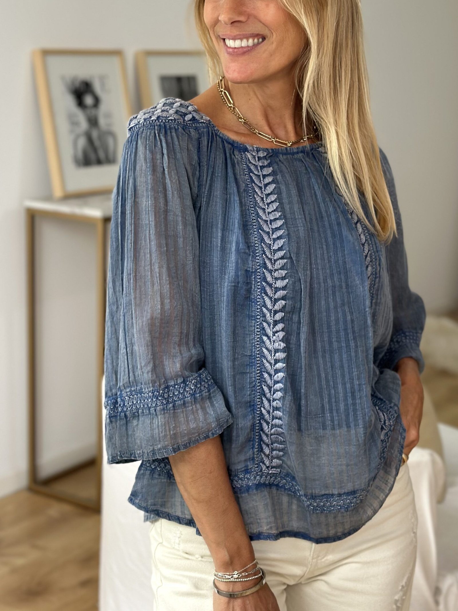 Blusa tipo gasa bambula bordada