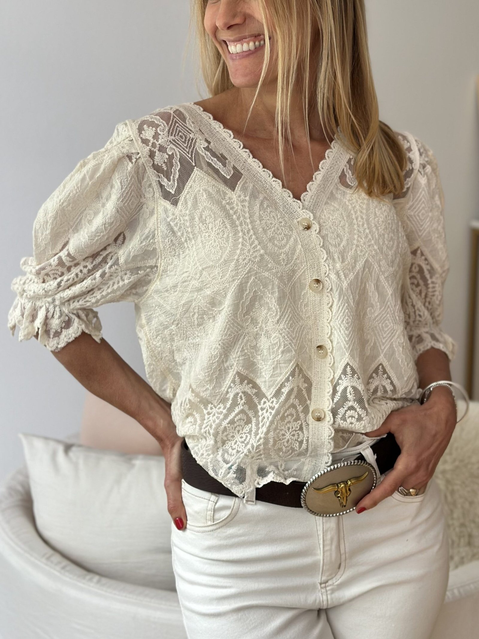 Camisa manga al codo broderie bordado