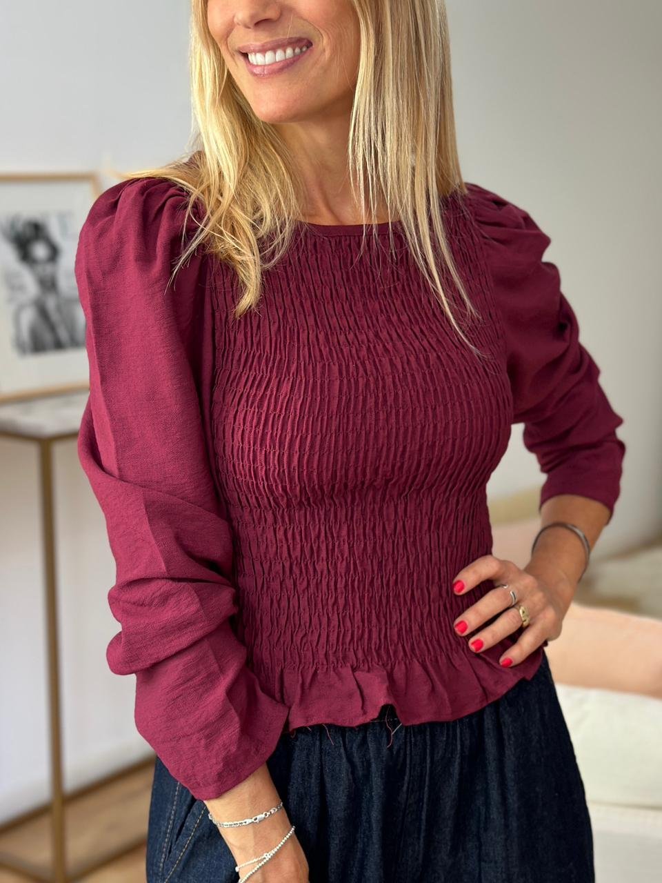 Blusa creppe elastizada manga princesa
