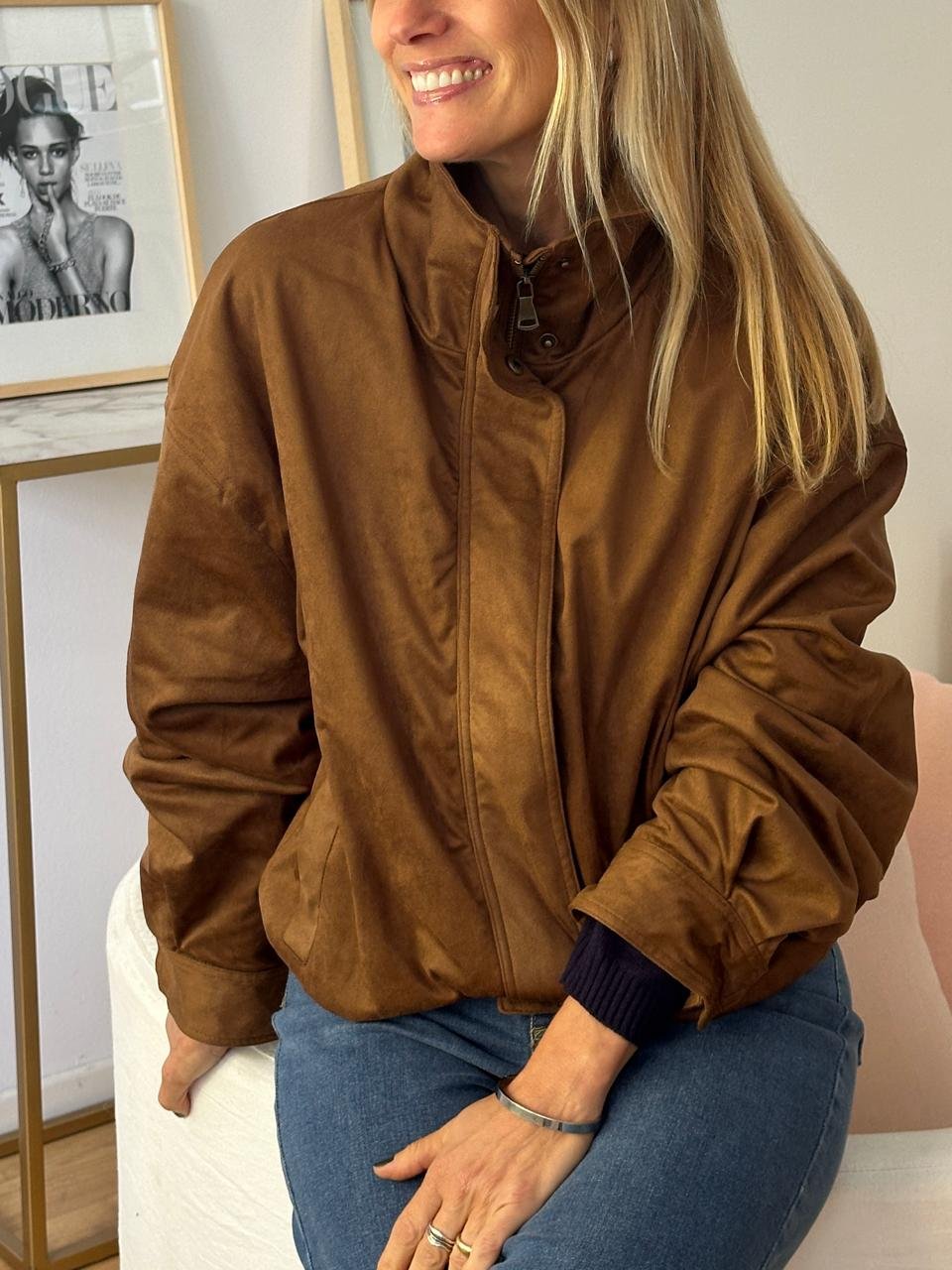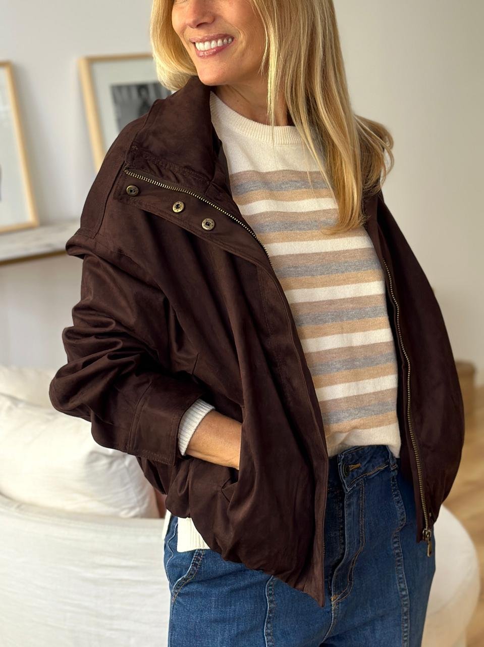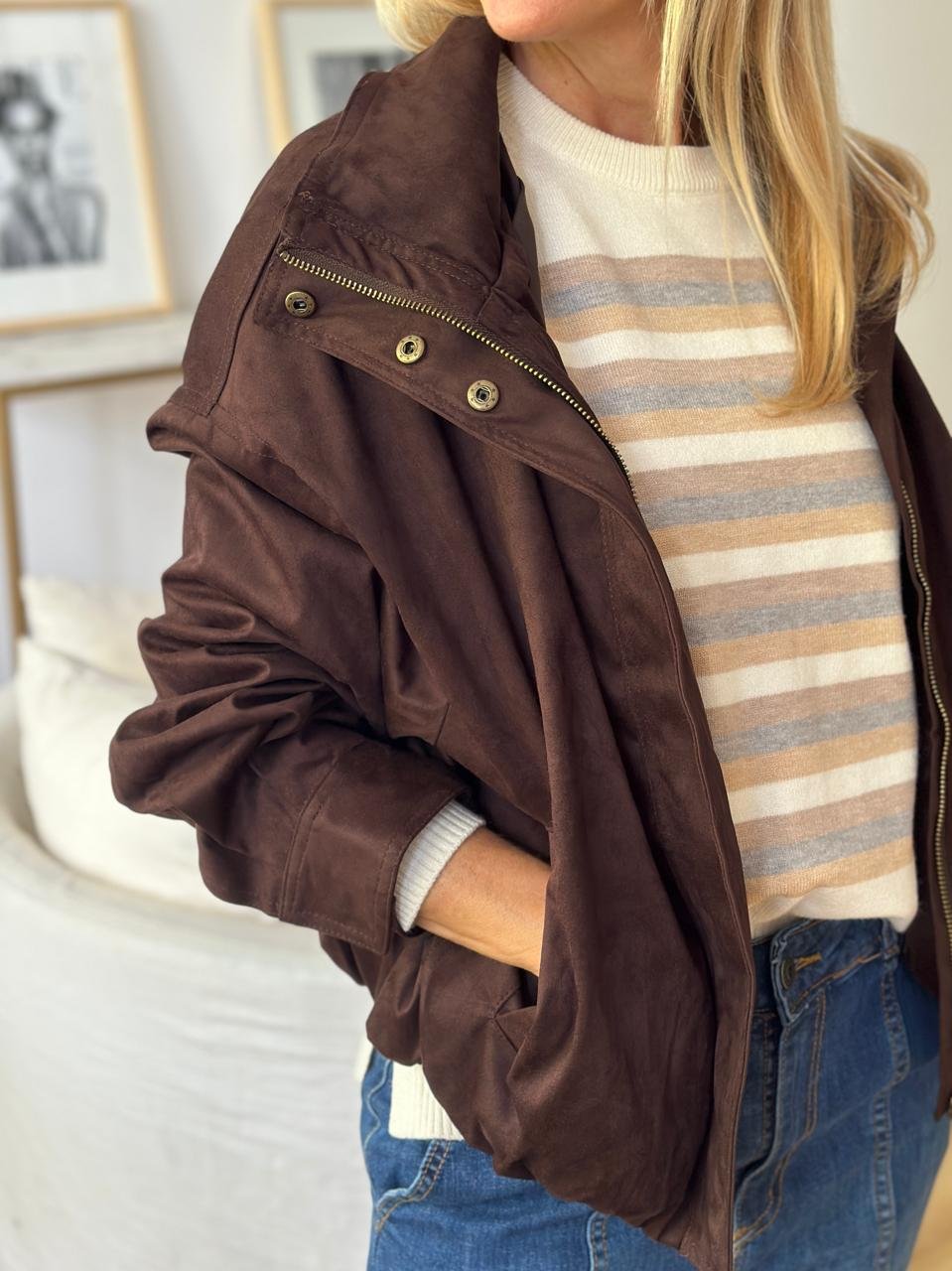 Campera tipo bomber gamuzada forrada