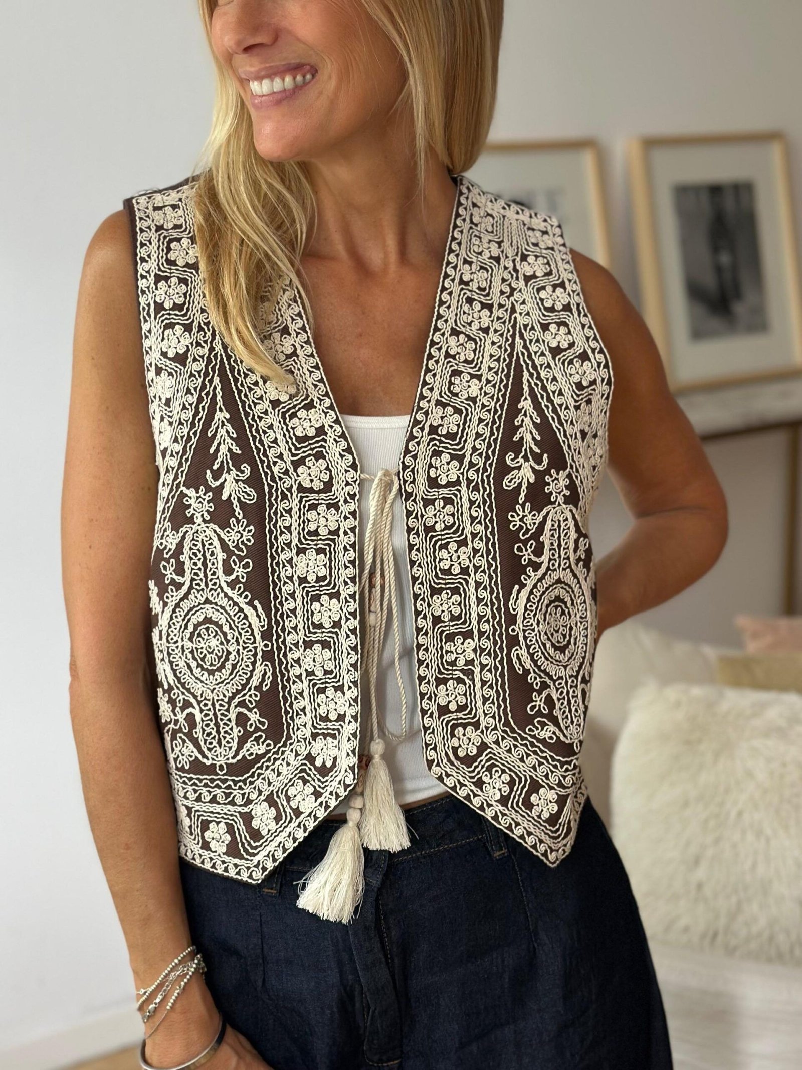 Chaleco jean bordado