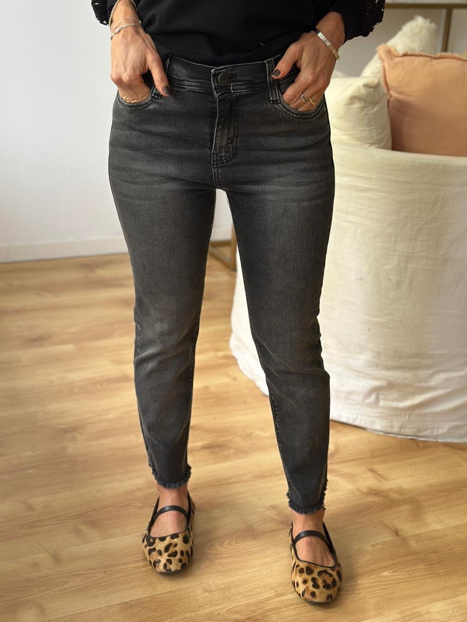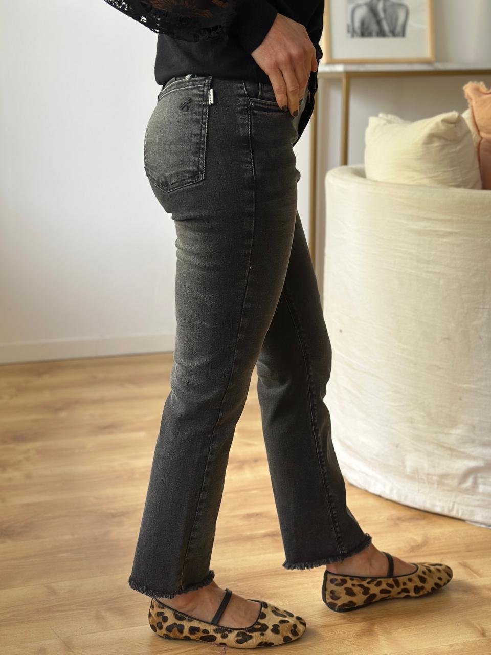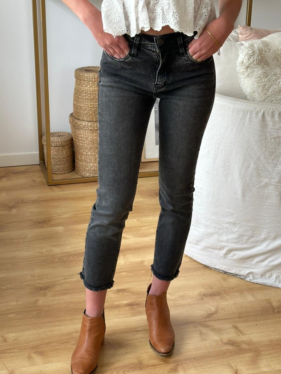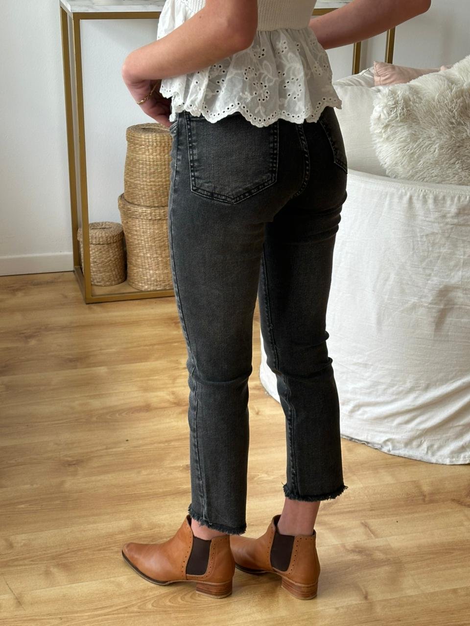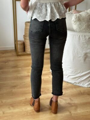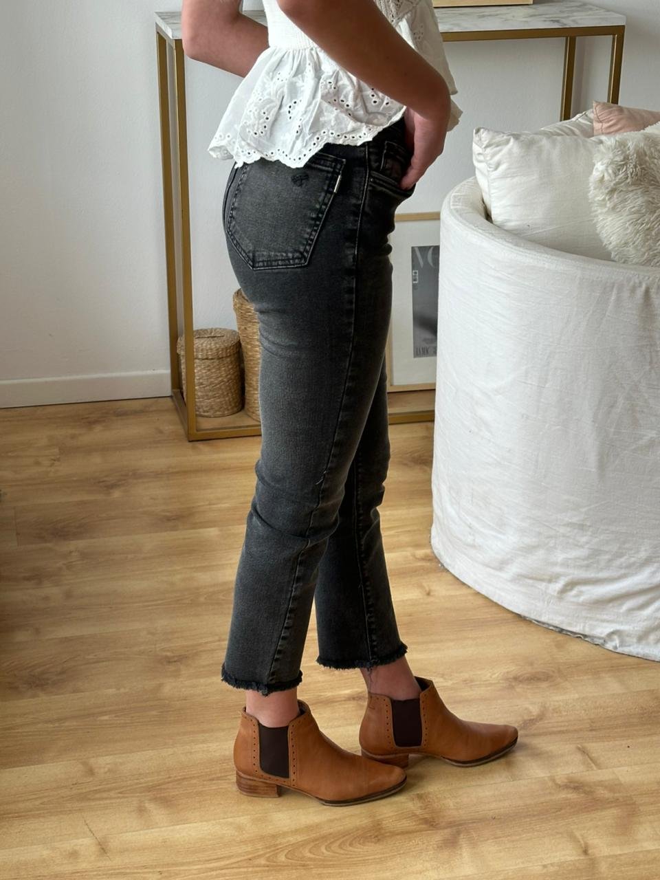 Jean elastizado crop negro humo deflecado (Cenitho) Composición: 97% algodón 3% elastano