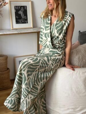 Maxipalazo sedita estampado con medio elástico en cintura y bolsillos