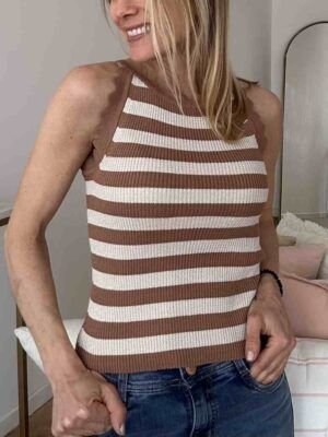 Musculosa hilo con lycra y lurex, detalle de picos en sisa