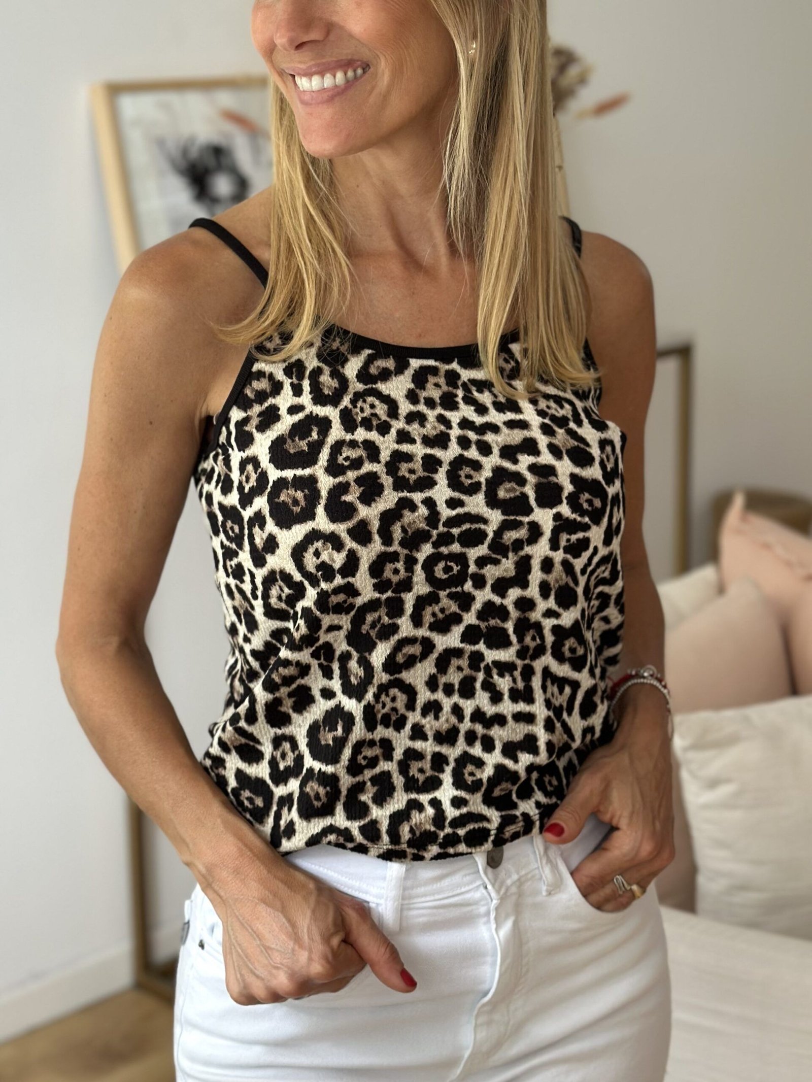 Musculosa con breteles finos algodón estampado Contorno de busto: 76 cm Largo: 50 cm Composición: sin especificar
