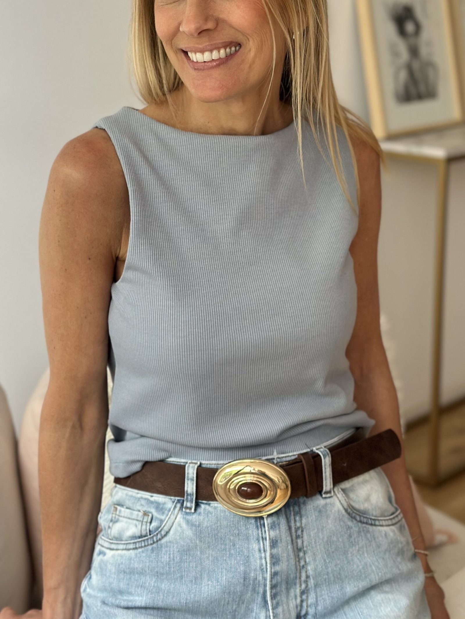 Musculosa básica con cuello bote confeccionada en morley algodón