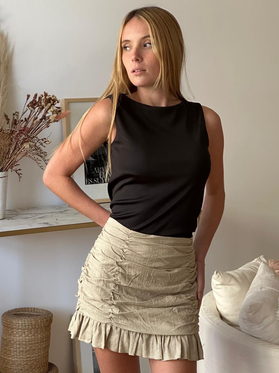 Musculosa cuello bote doble tela, de ribb de microfibra