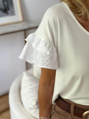 Remera morley manga broderi Contorno de busto en plano: 96 cm Largo: 56 cm Composición: