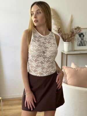 Short-pollera con elástico en la cintura confeccionado en crepe sastrero