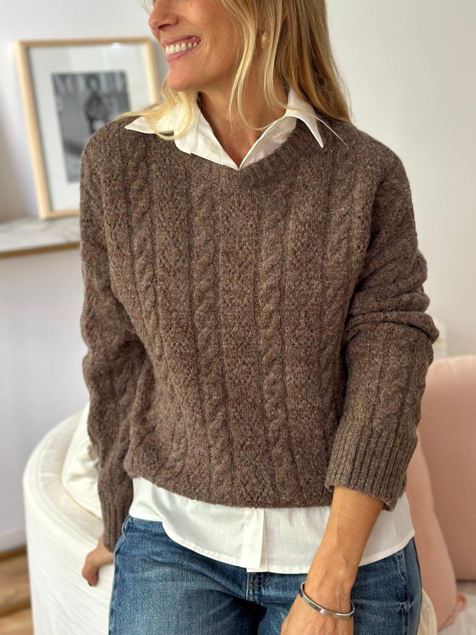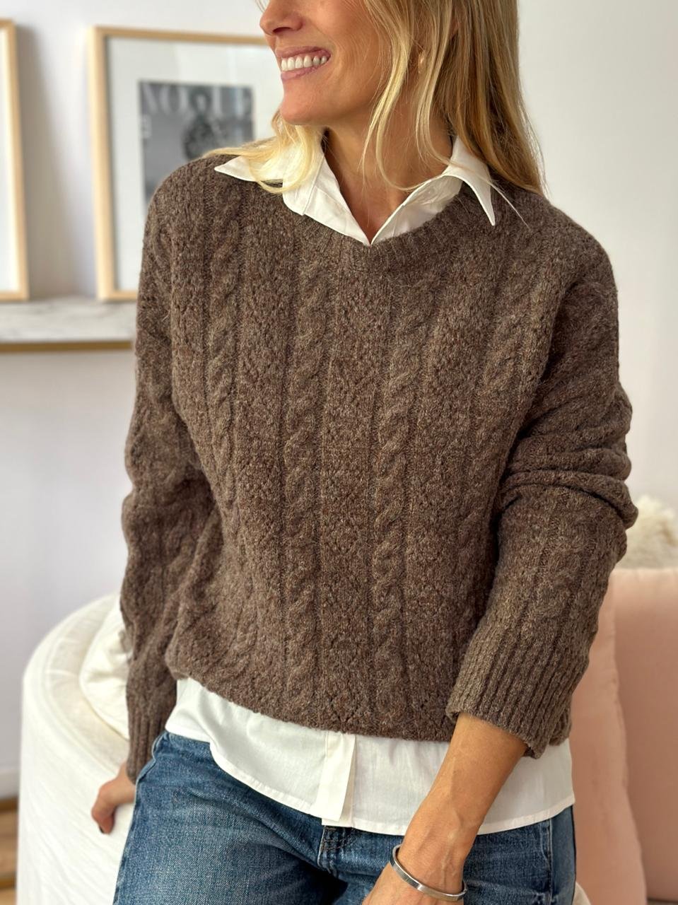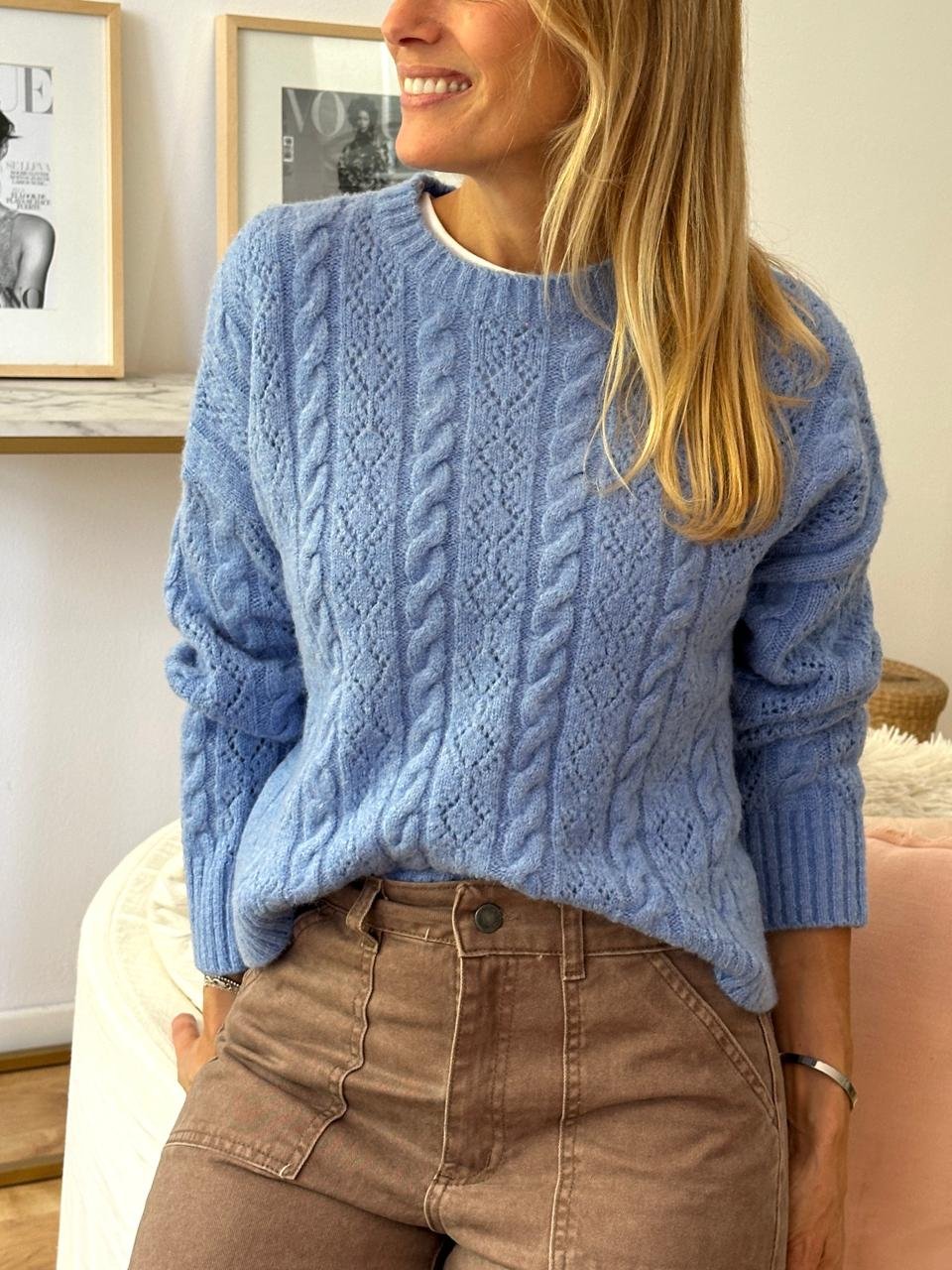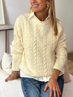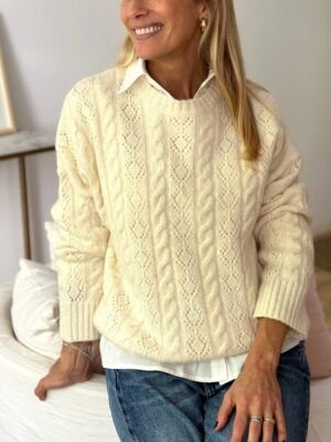 Sweater calado y trenzado lana Contorno de busto en plano: Largo: Largo de manga: Composición: