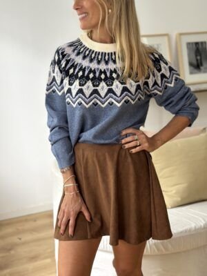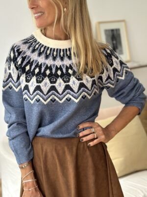 Sweater lana guardas tipo bariloche manga ranglan
